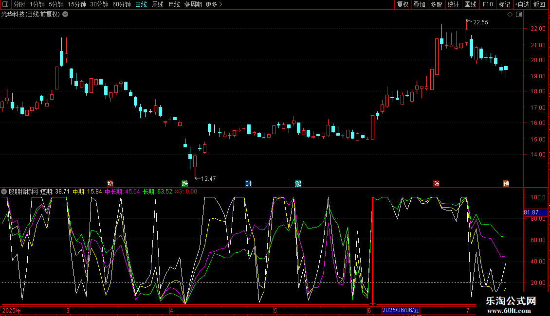 - 中长期:基于4N周期(默认20日)计算威廉超卖值,用洋红色线显示。