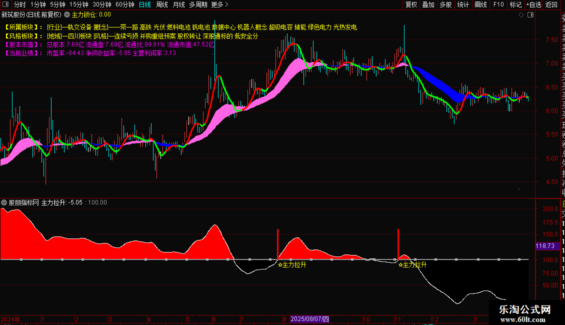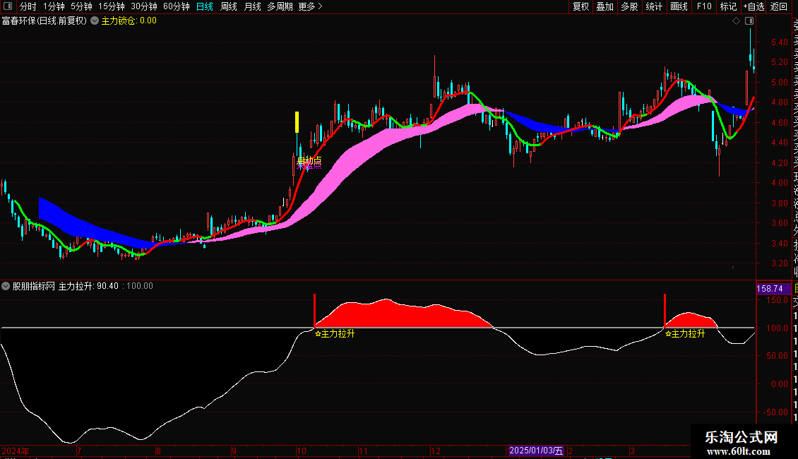 2. 副图使用:导入副图指标后,关注“主力拉升”线突破100的节点,突破时会标注“☆主力拉升”;