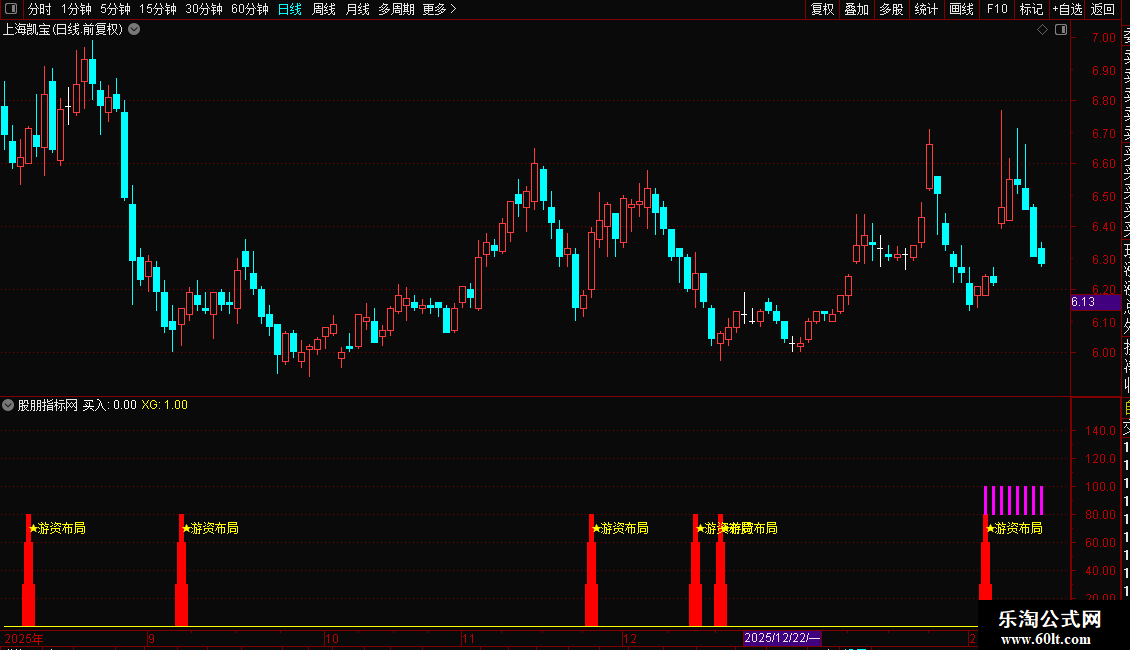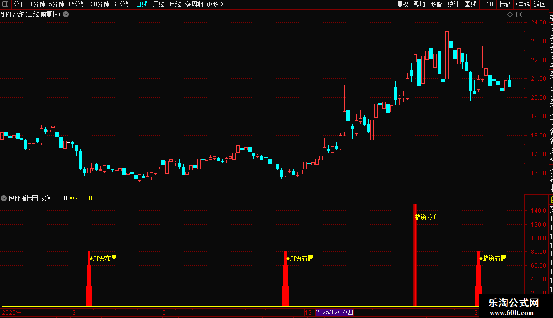 幅图指标核心通过价格涨幅筛选 + 量能结构背离 + 中期价格趋势三重逻辑,识别 A 股个股中 “游资拉升” 异动信号、“游资布局” 买入信号,同时统计 60 日内买入信号触发次数,在副图中直观标注各类信号,辅助捕捉游资介入的量价共振机会。