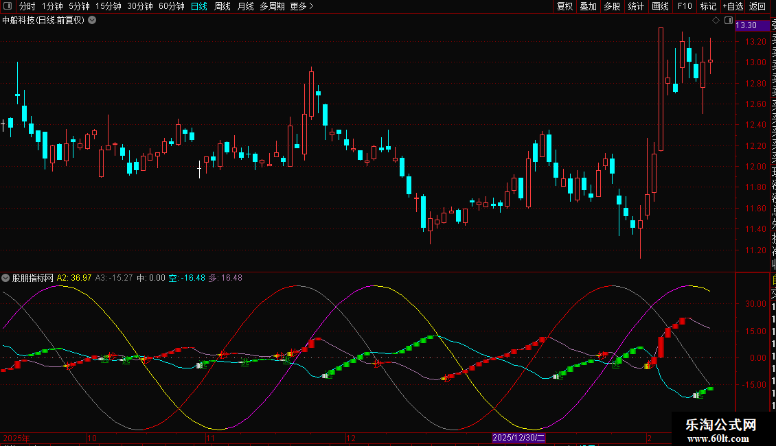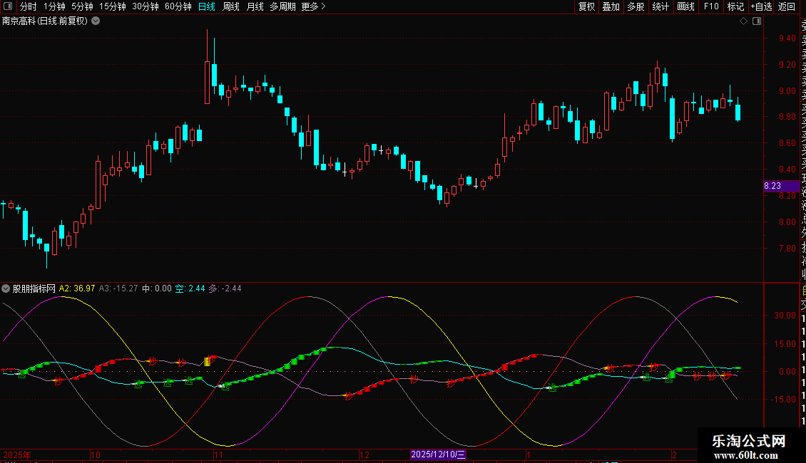 A3线(灰色/红色):基于交易周期数计算的余弦波动线。当A3线向上时显示为红色,向下时显示为灰色。与A2线共同构成波动参考。