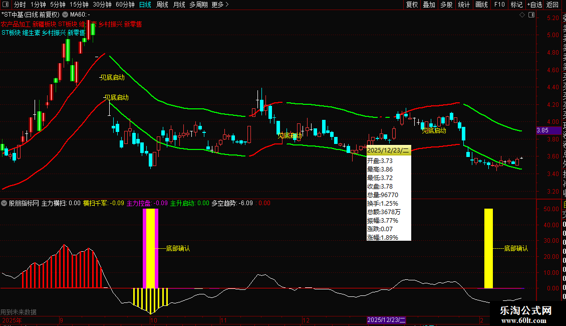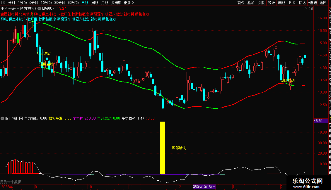 操作策略:当出现"见底启动"提示时,说明股价超跌且趋势转强,可逢低布局;当K线变色突破上轨时,表明多头发力,可顺势跟进;轨道线向上运行时持股,向下时谨慎观望。