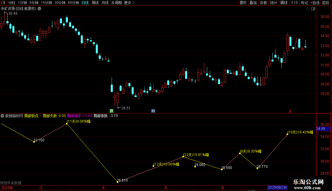 局部低点预选B赋值:若局部低点预选A=0ANDREF(局部低点预选A,1)=1则将最近2周期置为1