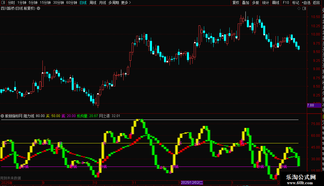 2. 参考线:提供阻力位(80)、买入参考位(50)和底部参考位(20)。