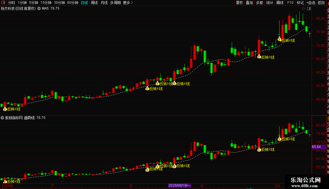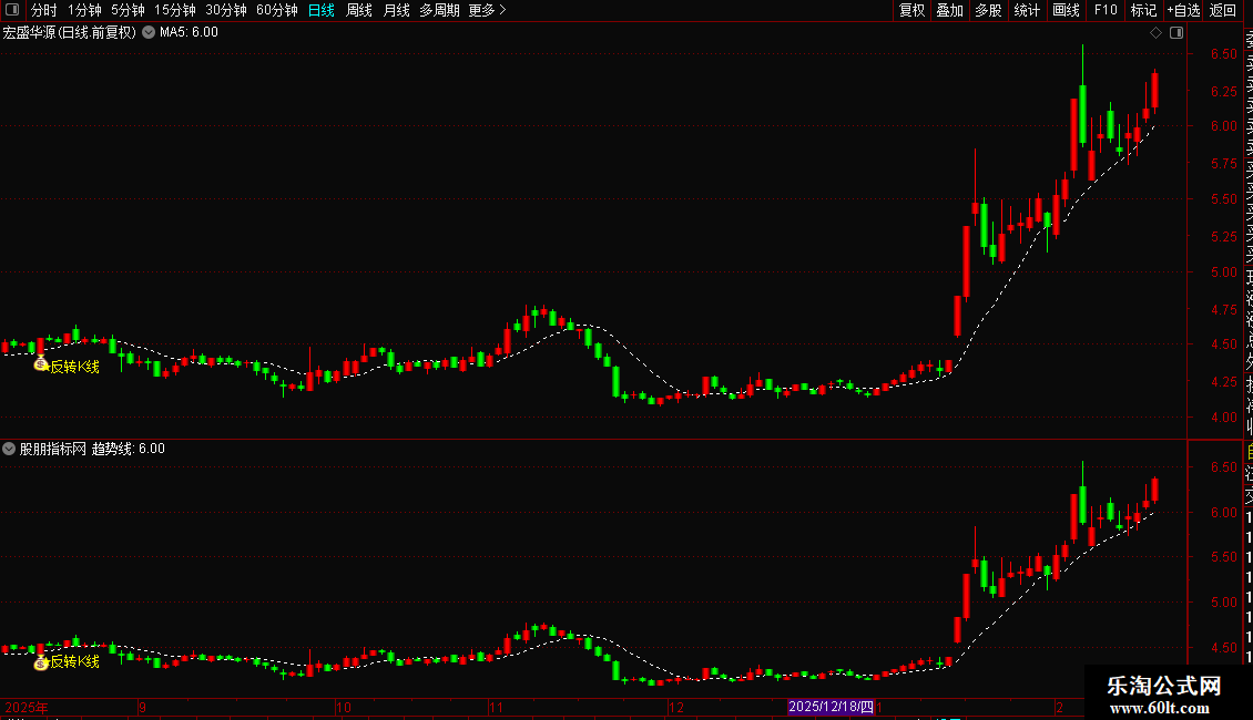 DRAWTEXT(条件,L*0.98,'★反转K线'),COLORYELLOW;