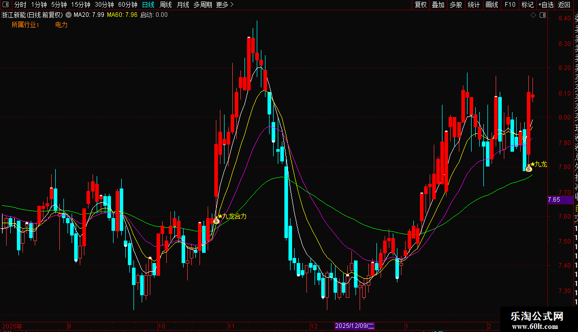 指标主要功能是监控主力资金动向与筹码集中度,识别个股所属板块,并捕捉主力吸筹结束后的爆发点。它通过计算平均成本与市场筹码分布,判断主力是否完成低位建仓。操作策略为:当出现“九天腾龙”或“九龙合力”信号,且伴随放量阳线突破时,视为强力买入时机;红色柱体代表主力积极持仓可跟进,需结合行业板块热点操作。