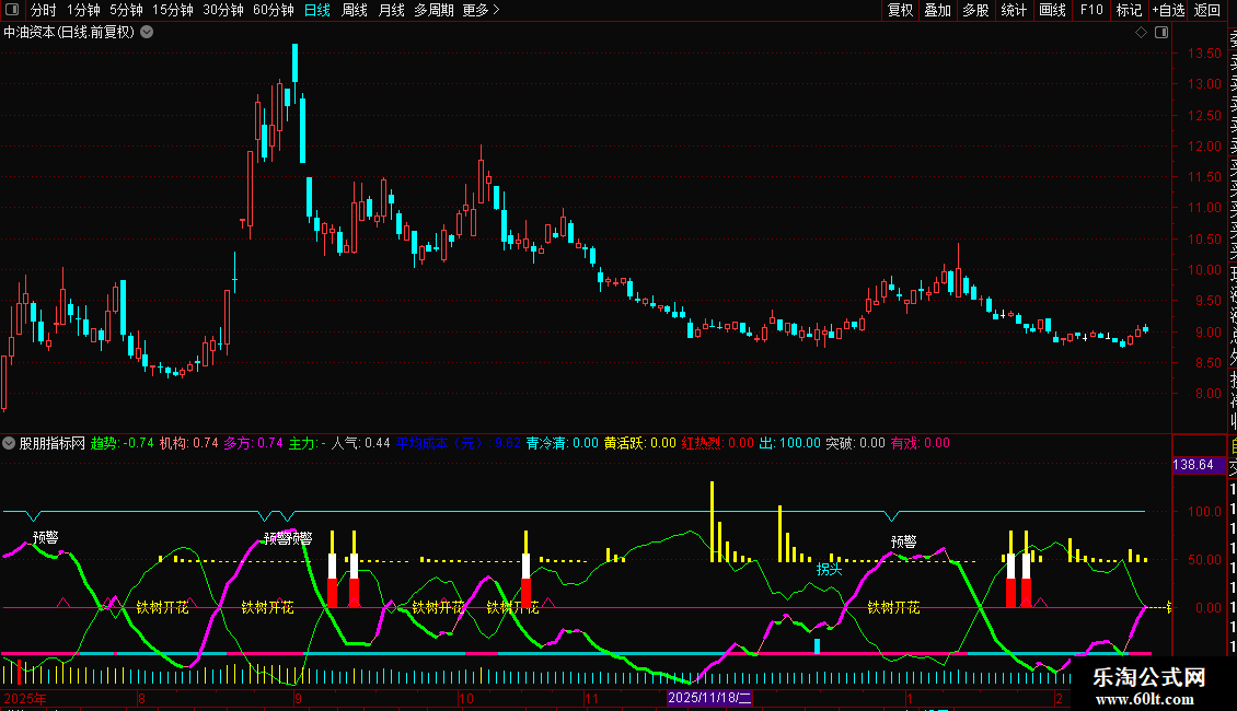 DRAWTEXT(CROSS(机构,趋势),0,'-----铁树开花'),COLORYELLOW;