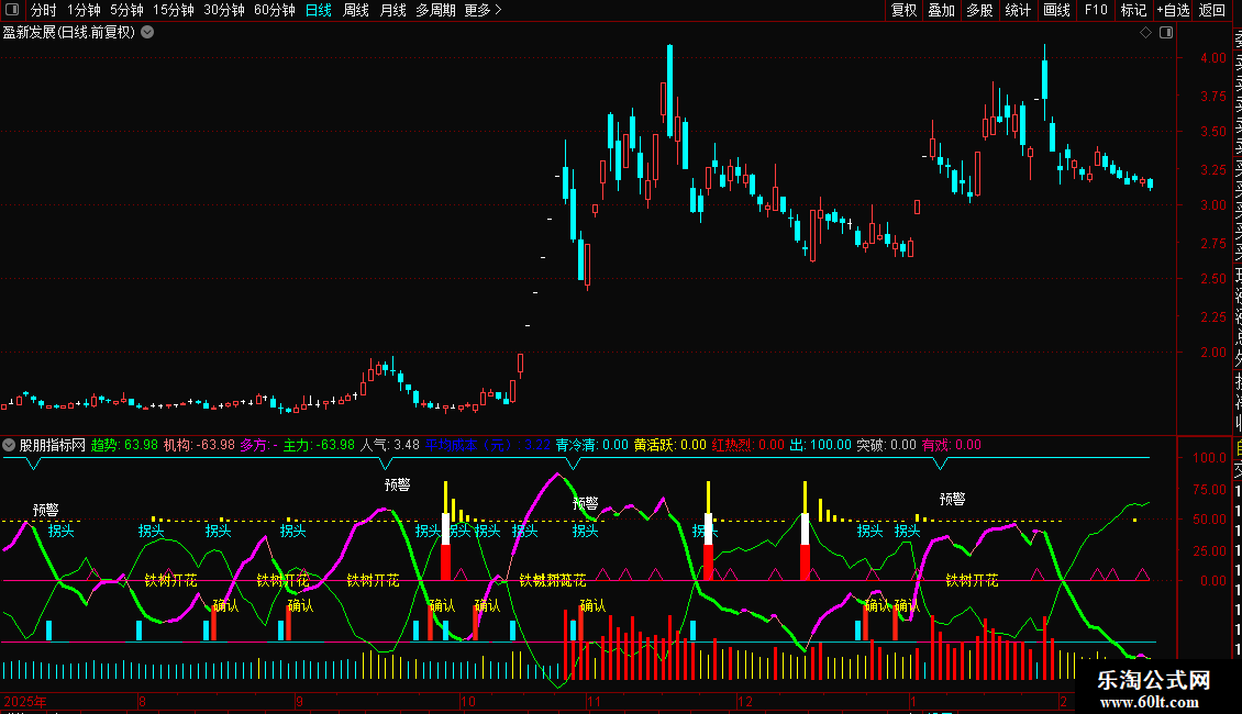 多方:IF(机构>REF(机构,1)&&趋势< REF(趋势,1)&&1,机构,DRAWNULL),COLORMAGENTA,LINETHICK3;