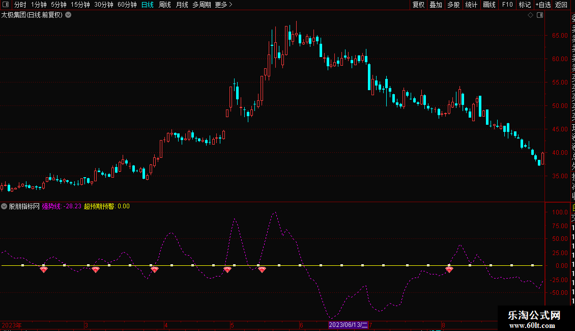 DRAWICON(CROSS(强势线,超预期预警),超预期预警*1.002,25);