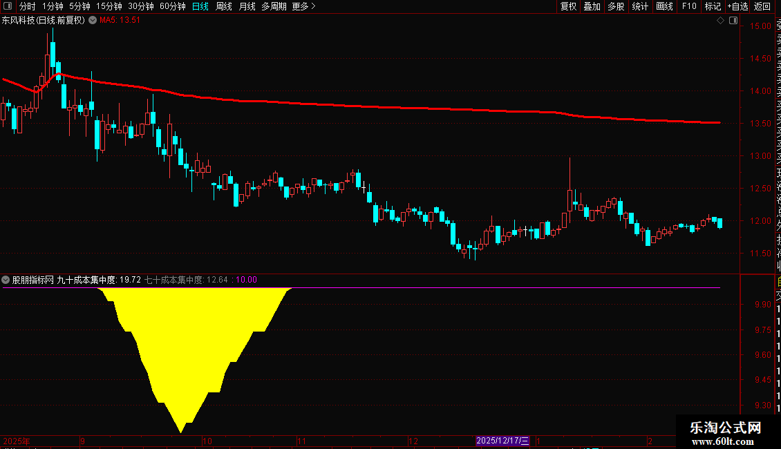 - 绘制90%和70%成本集中度数值,数值越小代表筹码越集中。