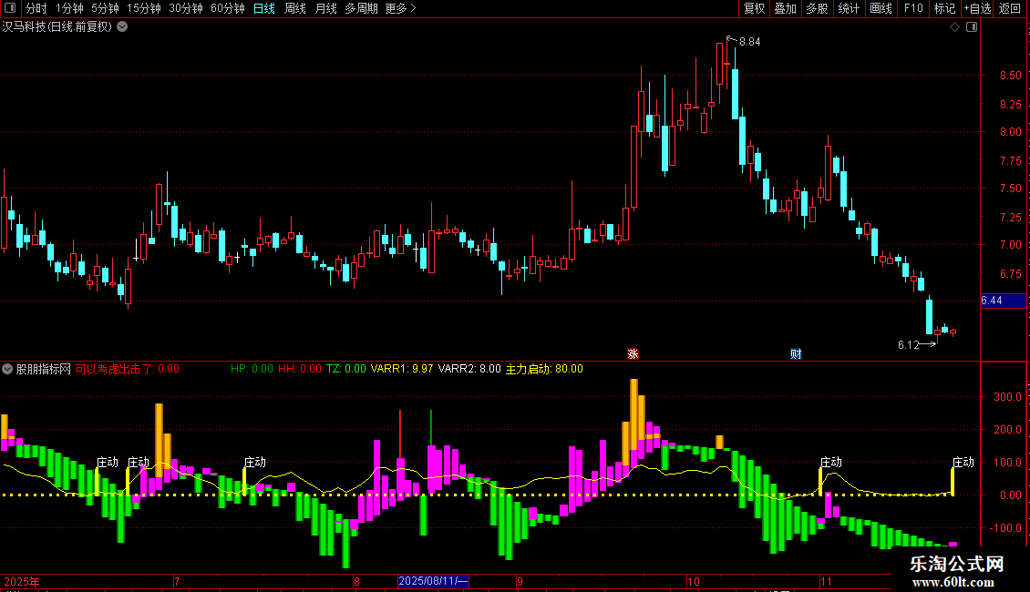 “主力启动”信号柱和“庄动”文字提供辅助的短线启动参考。