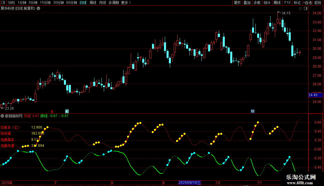 1. 财务数据显示:在画面左上角固定位置显示总股本、总市值、流通股本、流通市值四项关键财务数据,数值以亿为单位。