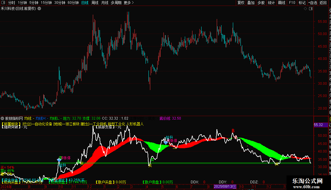 通过7周期与4周期的信号滤波算法,对横盘突破或破位信号做冗余剔除,结合60周期分时均线的趋势强弱界定做二次过滤,形成趋势势能加量能强度加价格结构的三重共振信号输出,锚定主力主动进攻或出逃的临界拐点,提升股票公式指标信号的纯净度。