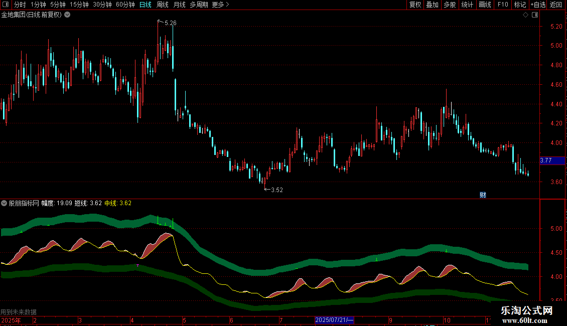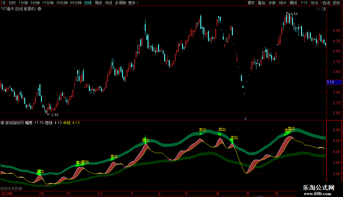 1. 动态通道:基于价格均线计算“买入”和“卖出”两条动态通道线,形成交易参考带。