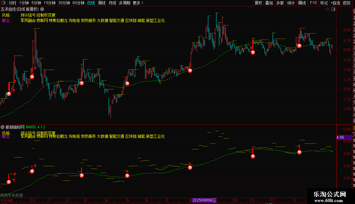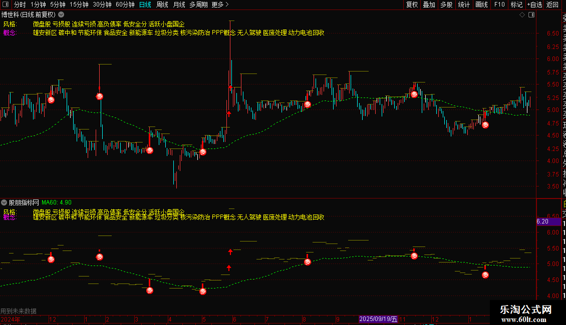MA60:MA(CLOSE,60) DOTLINE COLORGREEN;