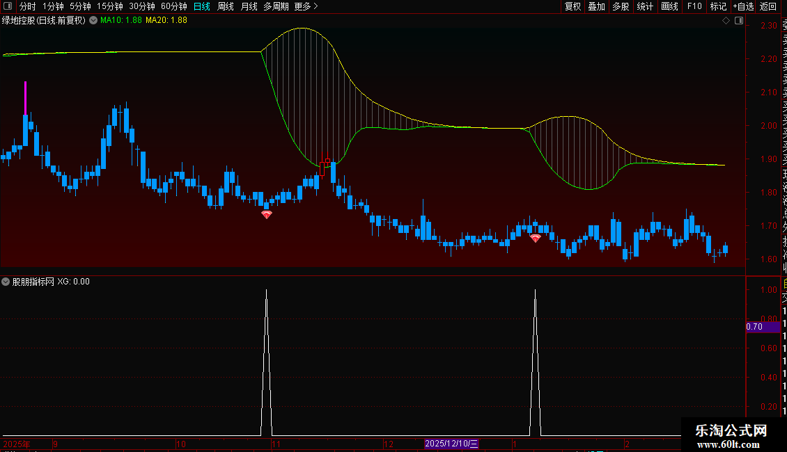 2. 副图公式:出现红色柱体时,对应主图反转信号,可确认趋势拐点。