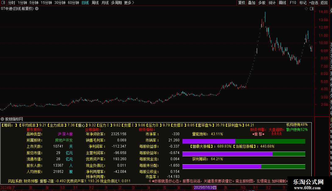 指标源码的主要功能是在K线图上集中展示股票的关键基本面(F10)数据和财务风险预警,省去手动翻看资料的麻烦。它把公司的核心“体检报告”直接叠加在交易界面上,方便投资者快速判断公司质地。