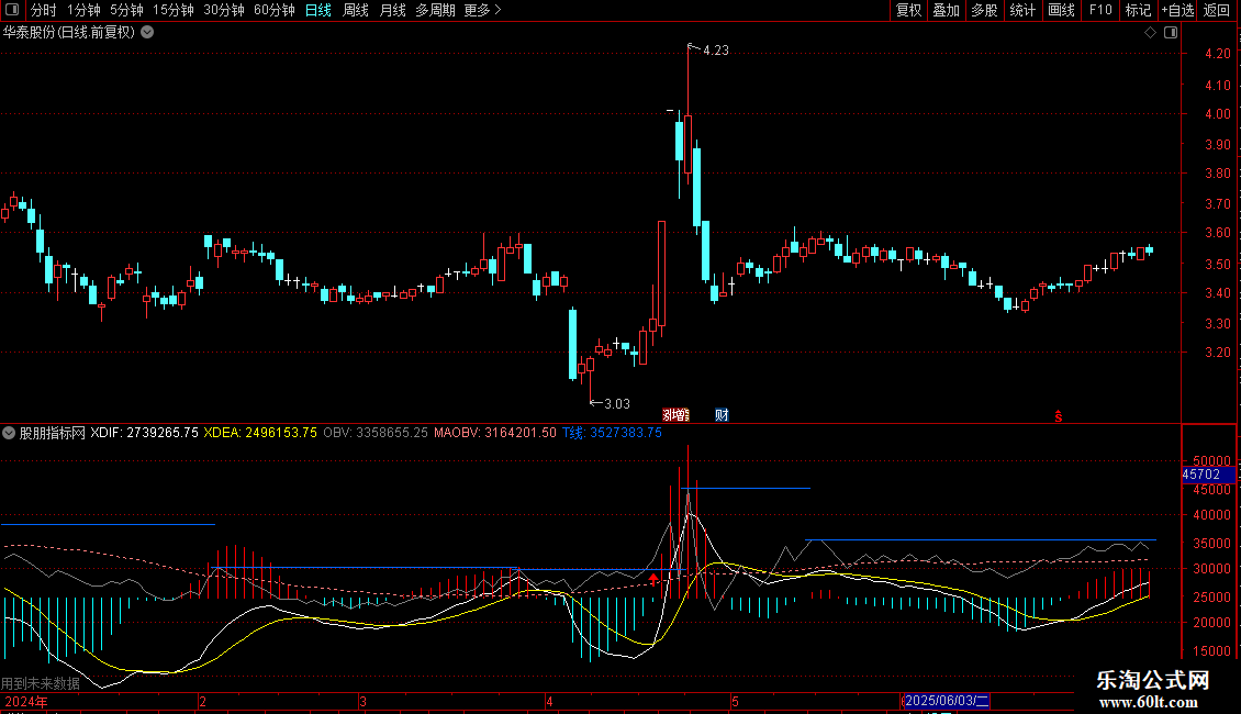 T线:REF(OBV,BARSLAST(D1)),COLORFF6600,NODRAW;