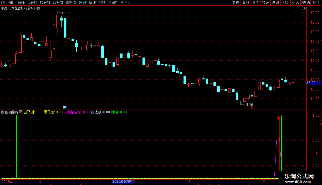STICKLINE(黑马剑,0,黑马剑*0.86,2,1),LINETHICK3 ,COLOR00FFFF;