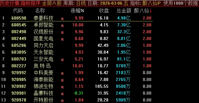 通达信【醉八仙】早盘竞价排序/选股指标多因子量化筛选强势潜力股源码
