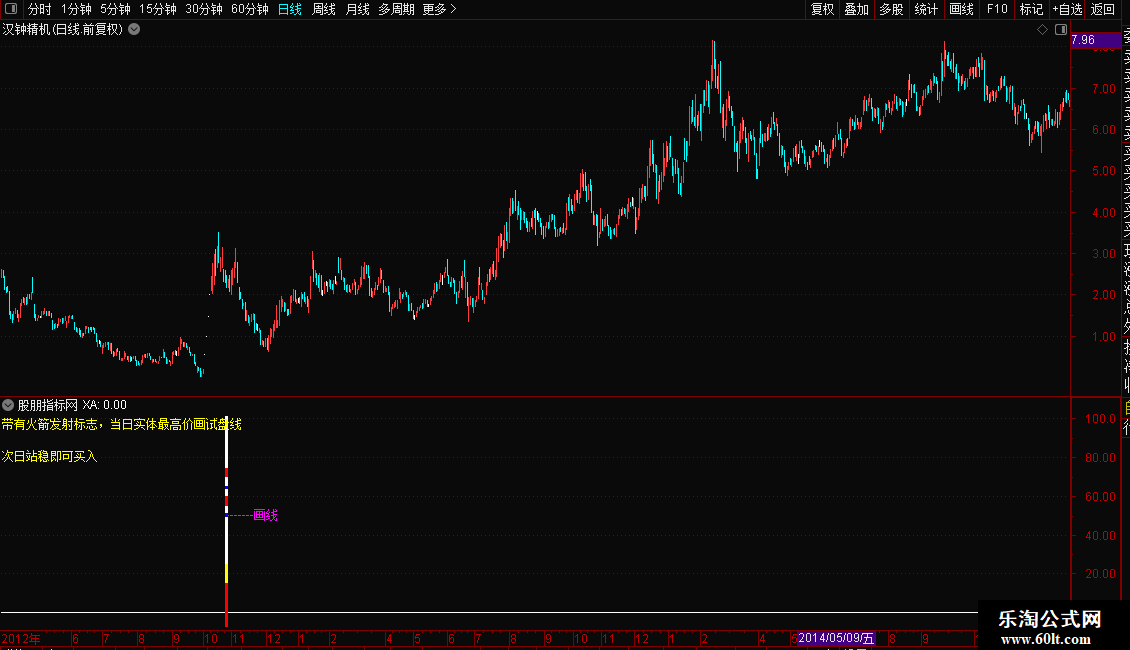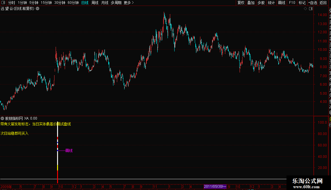 DRAWTEXT_FIX(1,0.00,0.00,0,'带有火箭发射标志,当日实体最高价画试盘线'),COLORYELLOW;