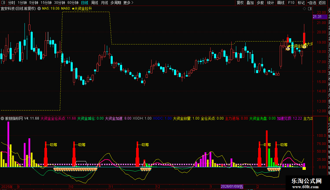 大资金吸筹副图指标源码如下