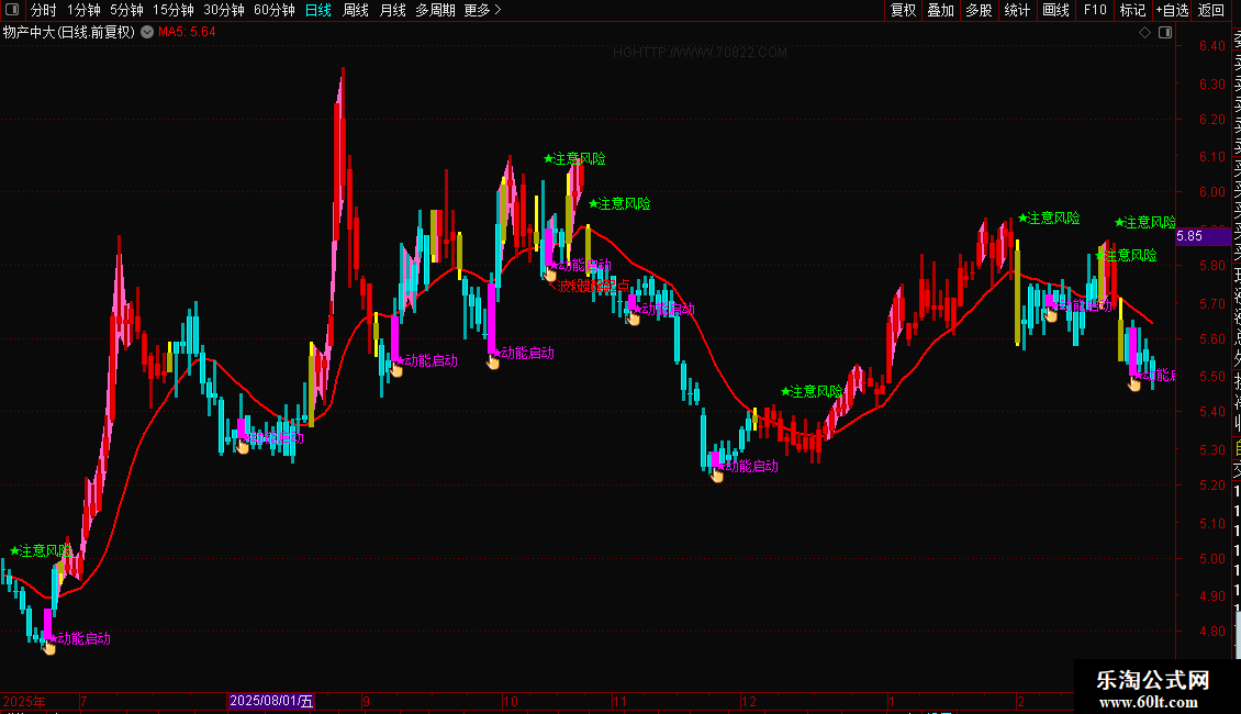 动能启动:当K线底部出现紫色“★动能启动”图标及文字时,代表短期下跌动能衰竭,股价可能迎来爆发,是短线介入的良机。
