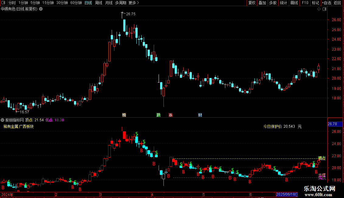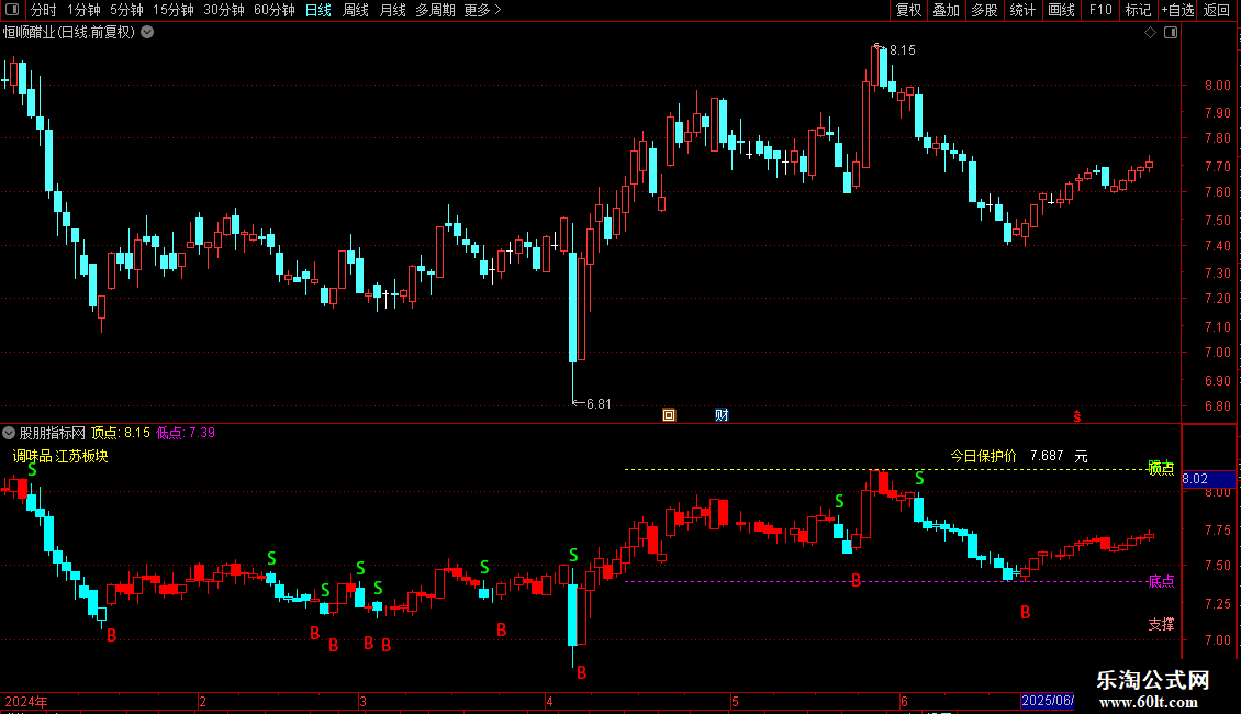 低点:IF(CURRBARSCOUNT<=60, CONST(IF(ISLASTBAR=1,LLV(L, BARSLAST(CURRBARSCOUNT=60)),1)),DRAWNULL),COLORMAGENTA,DOTLINE;