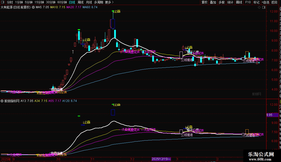 六、三线推进:EMA13、34、55三线齐升,股价同步站上三线;粉紫文字+细线画柱,多头确认信号可重仓跟进。