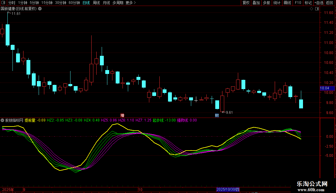 2. 趋势信号:对ROC进行多重指数平滑(EMA),生成多条平滑曲线(HZ1至HZ7),用于识别和确认动量趋势的强弱与方向转换。