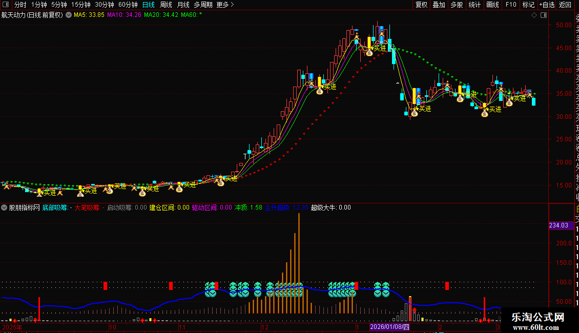 3. 在共振现象出现之后,如果主图进一步出现大阳买进信号,则意味着行情即将加速上涨,这是捕捉行情加速点的关键时机。掌握这一通达信底部共振指标,能够有效提升对股票启动阶段的判断能力,辅助投资者做出更明智的决策。
