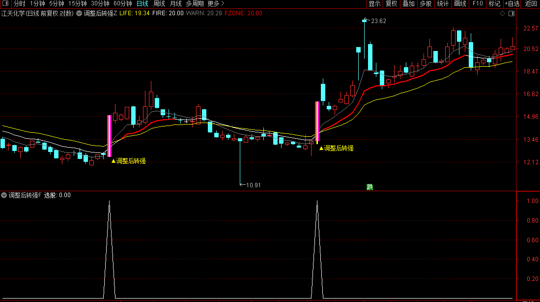 通达信【调整后转强】主副/选股识别经历充分调整后出现转折机会源码