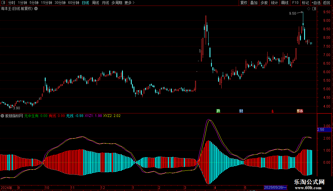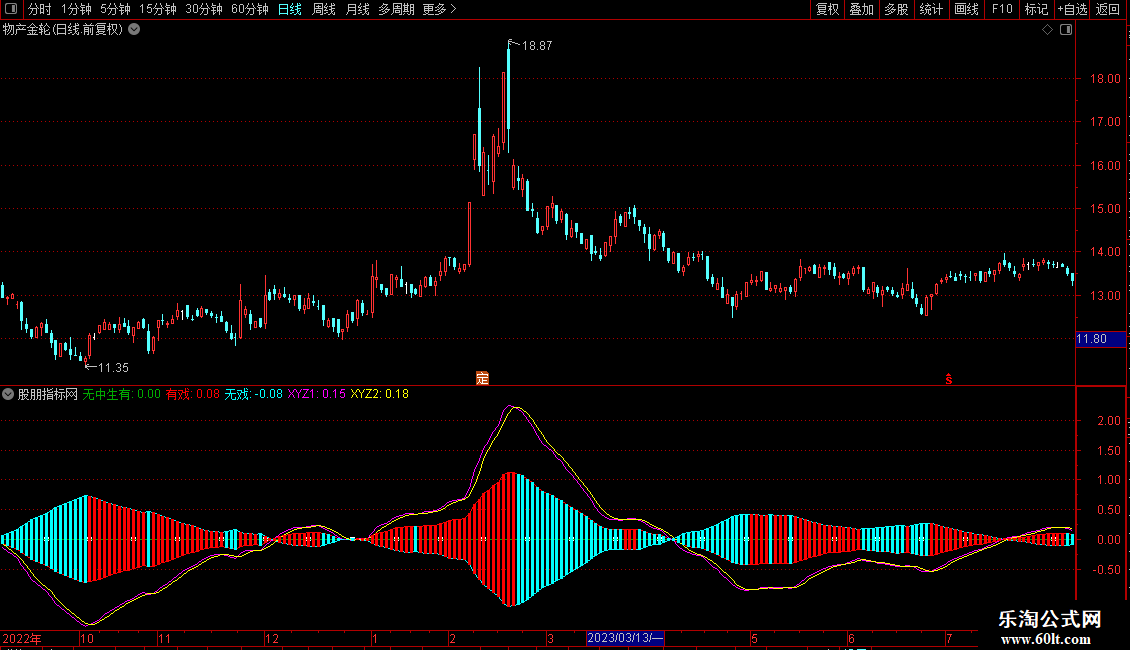 指标通过计算两条不同周期EMA的差值比率,构建“有戏”与“无戏”两条主线,反映短期趋势强度。其差值XYZ1与均线XYZ2的对比,用于判断多空状态,并通过柱状图直观显示。整体用于捕捉价格动量的变化与转折点。