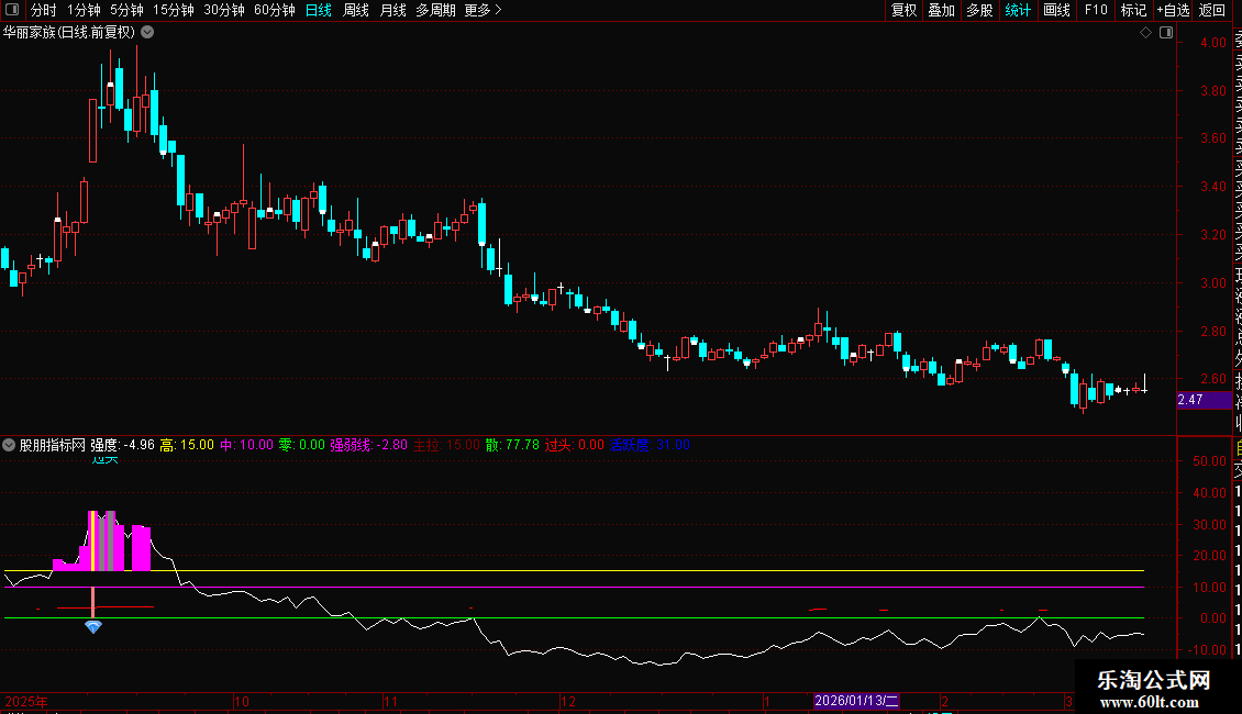 趋势判断:强弱线≥2 且强度≥10,代表中期多头趋势;强弱线≤0 且强度≤0,代表中期空头趋势。