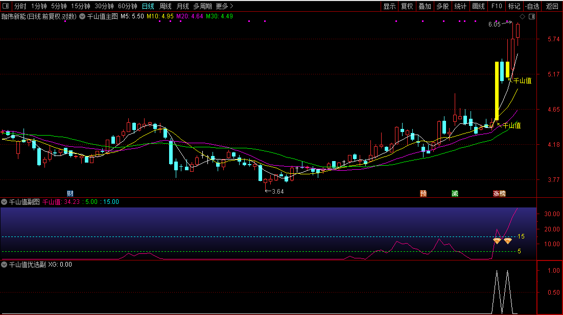 “千山值”超过15,表明走势极强。