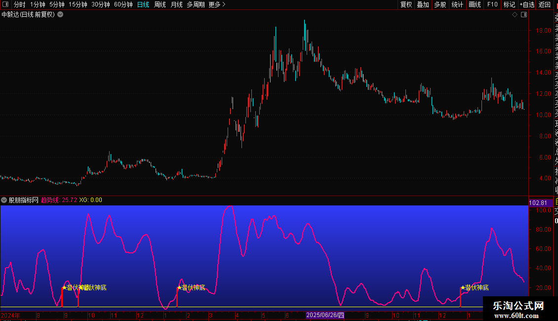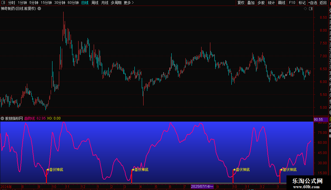 买入时机:当副图出现红色柱线并显示“★潜伏神底”字样,或者选股公式发出信号时,代表股价处于低位且趋势开始反转,适合激进者潜伏或稳健者观察。