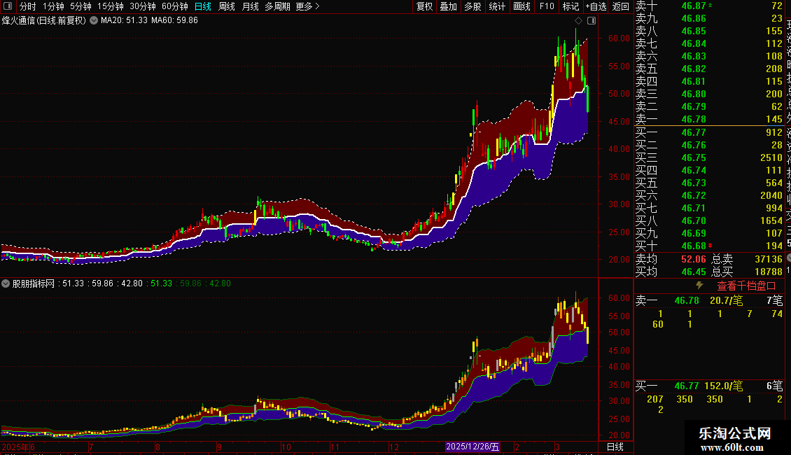 DRAWBAND(上轨,RGB(100,0,0),中间,RGB(45,0,140));