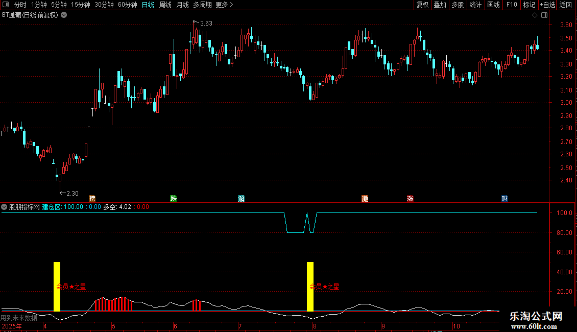 3. 会员之星信号:当满足特定的底部反弹条件时,在副图标注“会员★之星”文字,作为重点关注的买入预警信号。