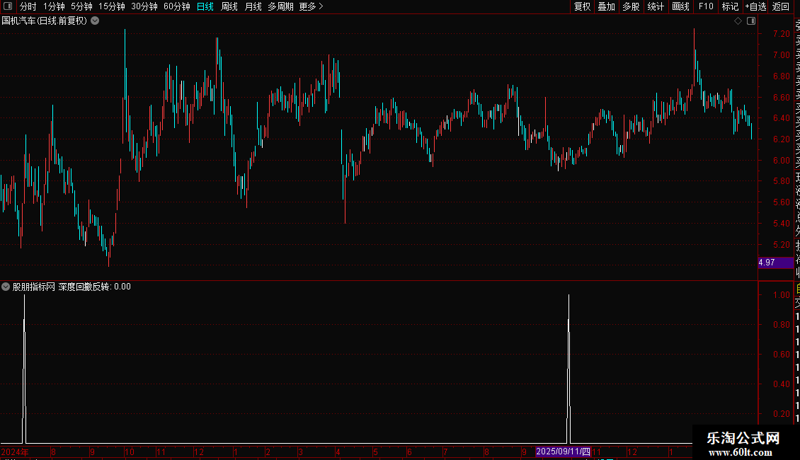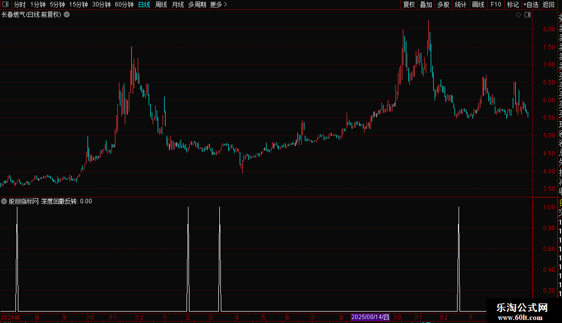 指标专为捕捉超跌后的强力反转行情设计。它结合短期随机指标与长期价格位置,筛选出股价经历深度回调、处于相对低位,且伴随成交量放大和资金流入的个股。操作策略上,当出现“深度回撤反转”信号时,表明空头力量耗尽,多头开始主导,是极佳的抄底或波段买入时机,适合博取反弹收益。
