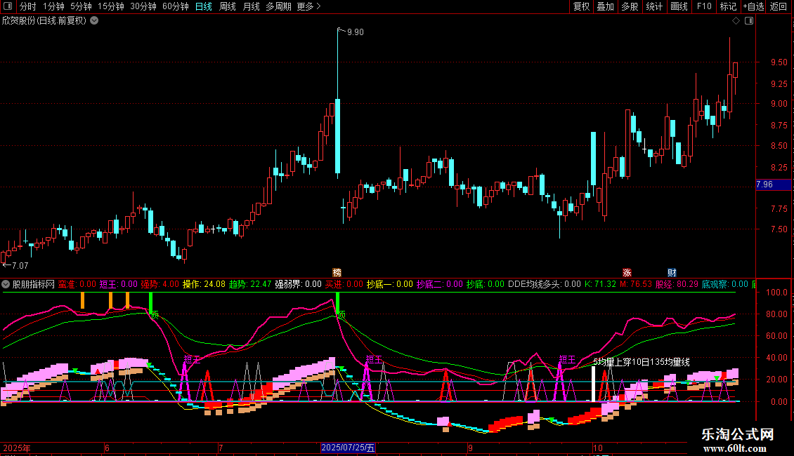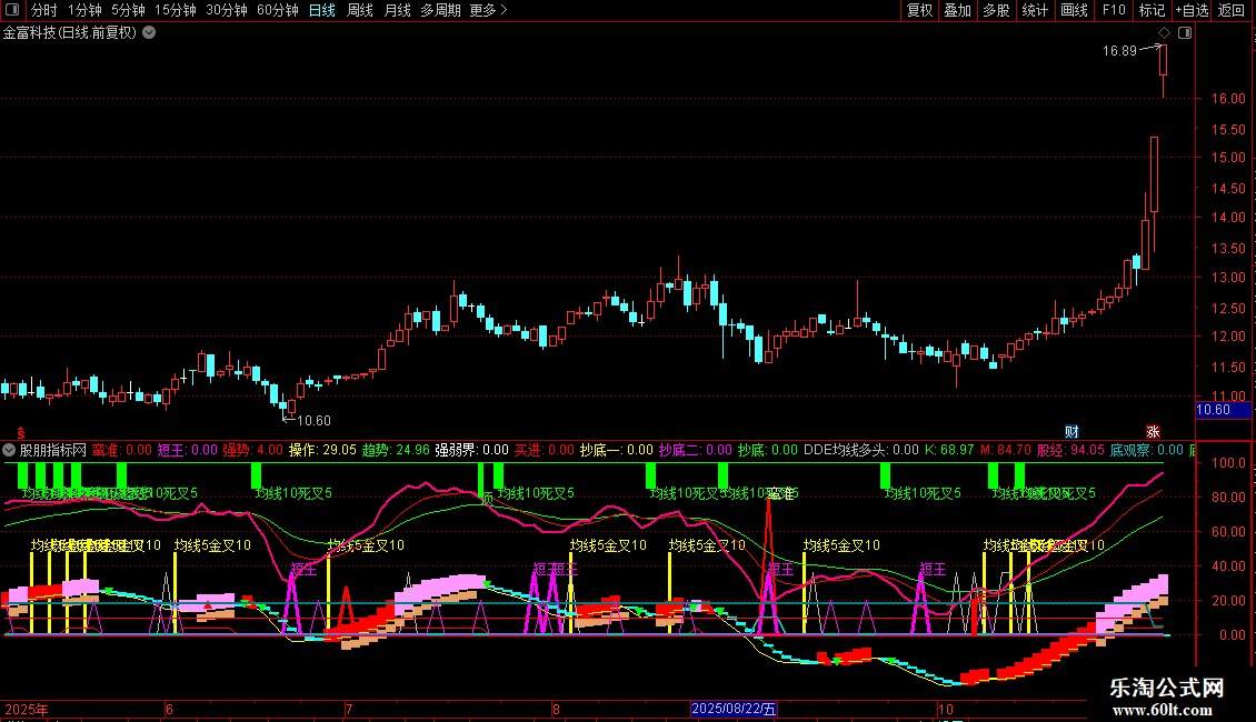 5. 强势状态标识:当均线多头、领涨大盘且趋势向上时,用特殊柱状线标记“强势”状态。