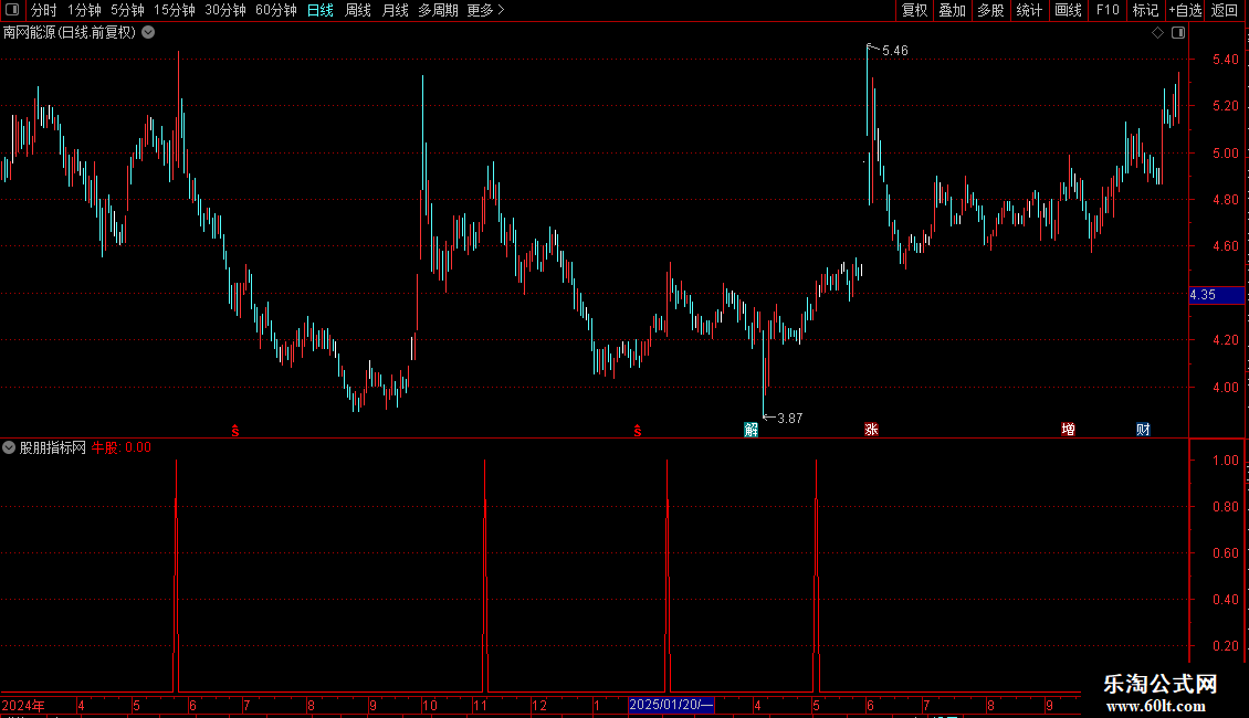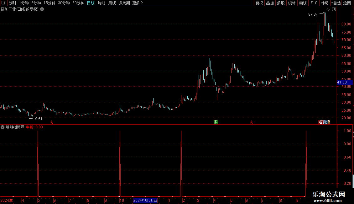 牛股:COUNT(AA,30)=30 AND V1>REF(V1,1)COLORRED;