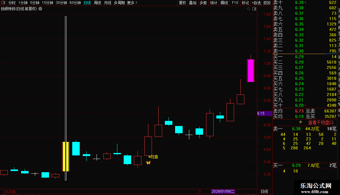 指标主要功能是识别主力控盘程度和捕捉超跌反弹机会。它通过统计特定形态的出现次数,判断股价是否经过充分洗盘,并在股价放量突破关键压力位时发出“控盘”信号,提示主升浪可能开启。同时,当股价在低位连续出现特定止跌形态且跌幅过大时,会标注“抄底”提示,博取短线反弹。操作策略上,见到“控盘”字样可顺势跟进做多,出现“抄底”字样可轻仓试错博反弹,需结合成交量确认。