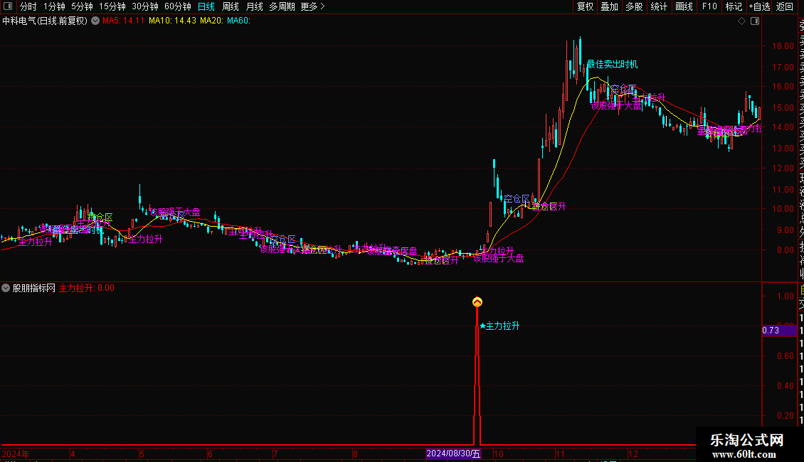 DRAWTEXT(主力拉升,0.8,' ★主力拉升'),COLORFFFF00;