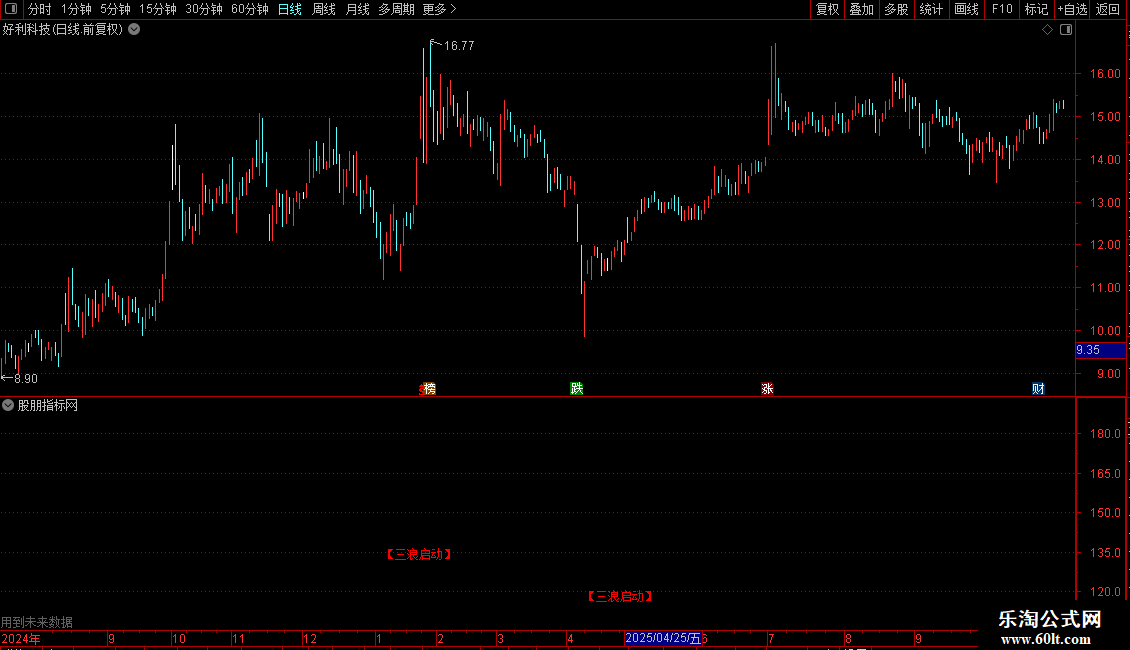 指标用于识别“三浪启动”形态。