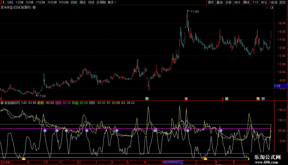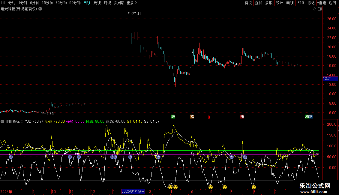 指标包含两个核心部分:YJD和S系列线,用于判断超买超卖和资金强弱。