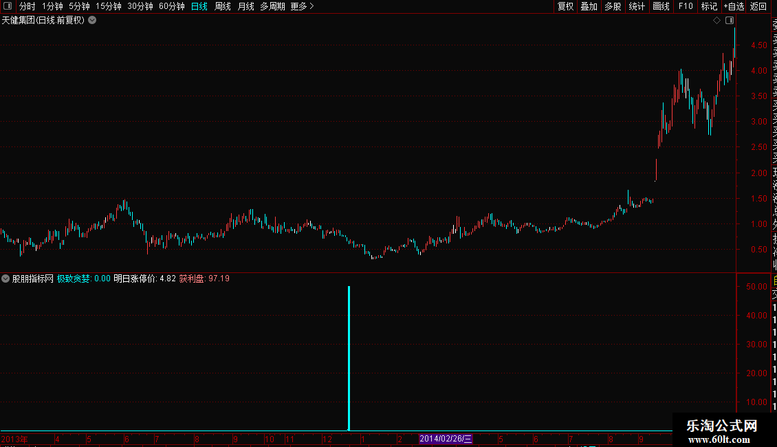 明日涨停价:ZTPRICE(CLOSE,0.1),NODRAW,COLORWHITE;