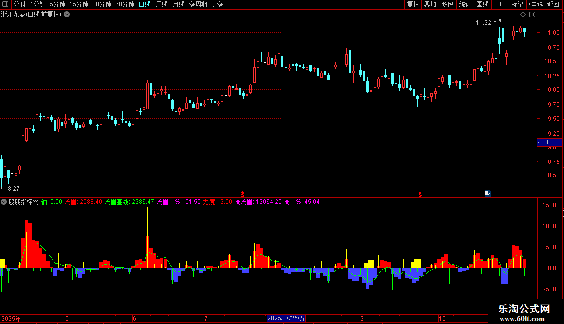 - 观察“流量”柱状图与“流量基线”的关系,判断资金趋势。