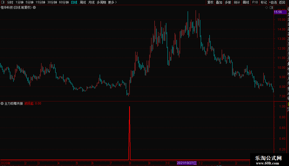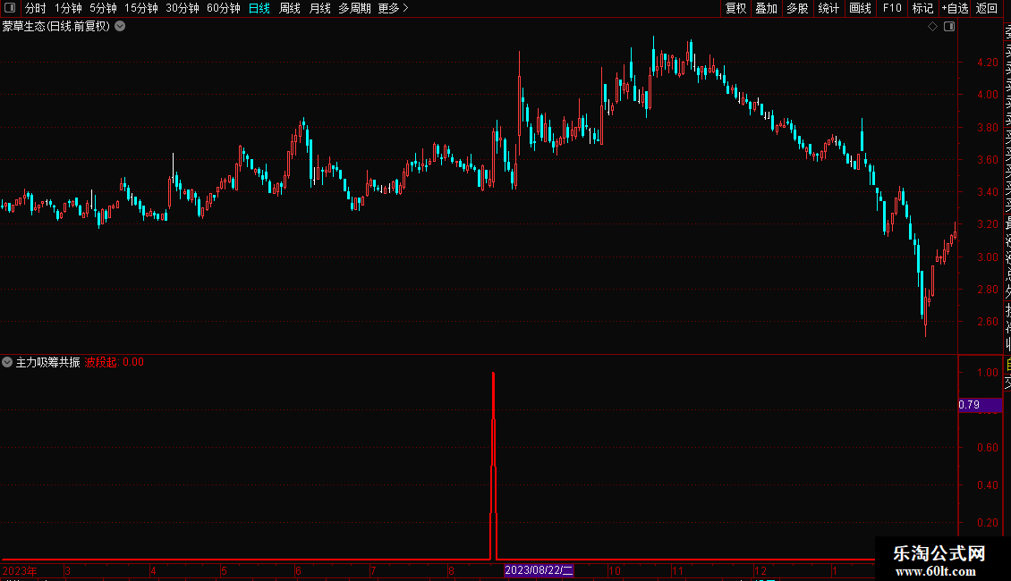 指标主要用于捕捉低价股的波段启动点。核心逻辑是结合趋势、动量与价格突破:首先要求股价处于60日均线之上且均线向上,确立多头趋势;其次利用类似方向指数的算法,确认上涨动能强于下跌动能;同时配合短期均线金叉长期趋势线,并限定股价低于50元的主板及创业板股票;最后需满足收盘价站上60日均线且开盘价在均线下方的突破形态。