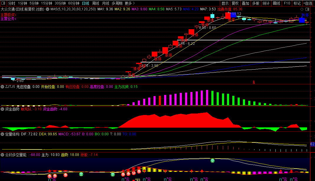 通达信【云豹多空量能】1主4副2选股掌握成交量是纵横市场源码