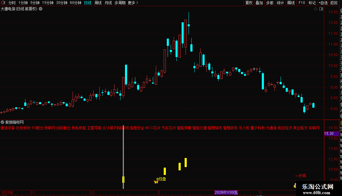 DRAWTEXT(BARSLASTCOUNT(X_CQ)=1,1.097*H,'←抄底'),COLORRED;