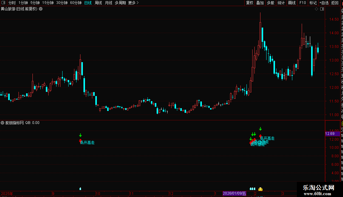 DRAWTEXT(QB AND 低开高走信号,L*0.90,'双信号'),COLORRED;